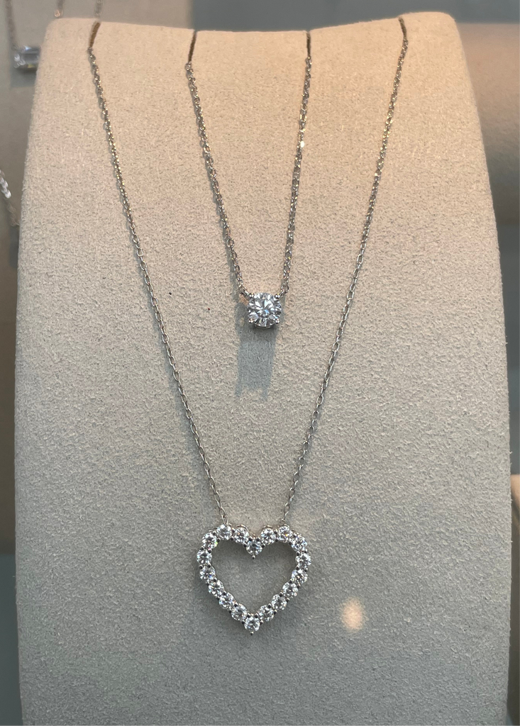 Silver necklace with a diamond solitaire pendant on a white plate