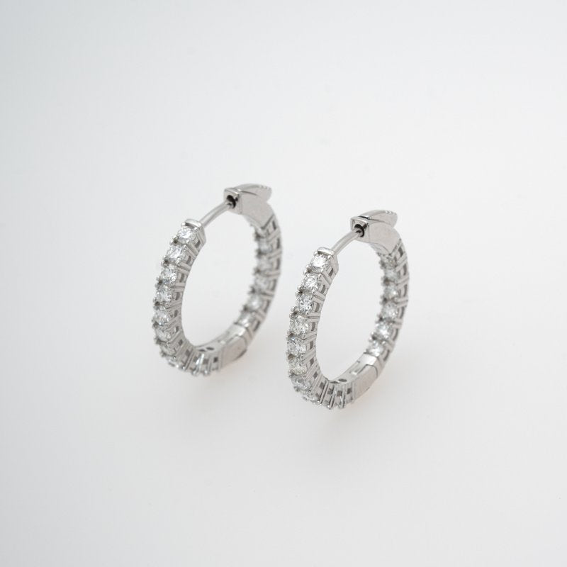 Stylish 20mm inside-out hoop earrings with 1.5ct lab diamonds in rhodium plated sterling silver—brilliant sparkle all around.