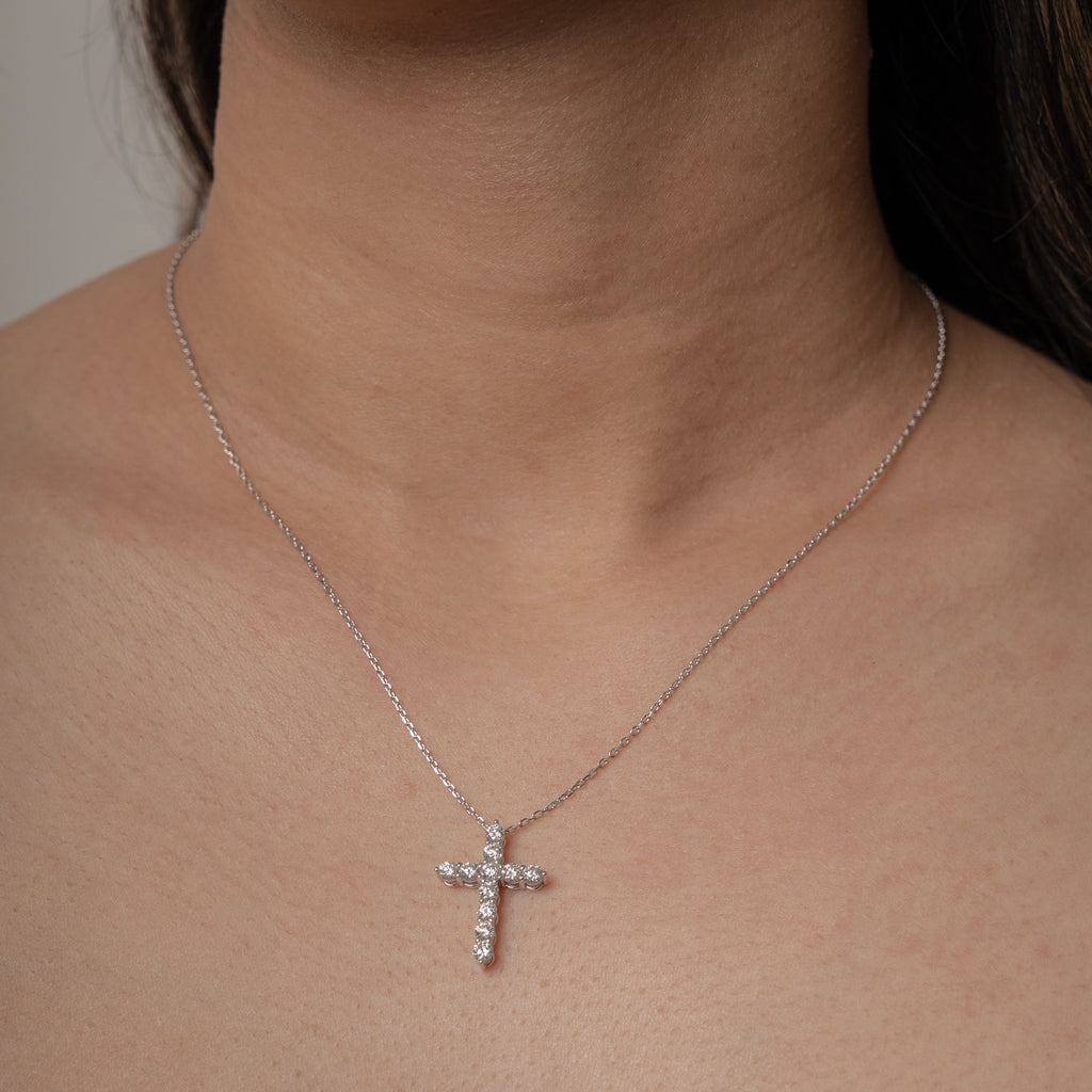 The Angelica Diamond Cross Necklace embodies timeless sophistication and grace. Crafted with 11 round brilliant lab grown diamonds (2.8mm) , this exquisite piece offers a refined elegance that complements any ensemble with subtle luxury. Its delicate design makes it perfect for every occasion.