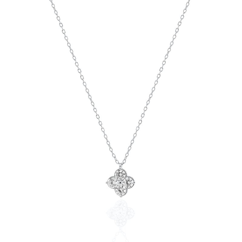 The Victoria Clover Necklace showcases enduring elegance through its sophisticated design, combining contemporary style with brilliant cubic zirconia accents. This piece embodies refined beauty while introducing a subtle, playful element to your wardrobe.