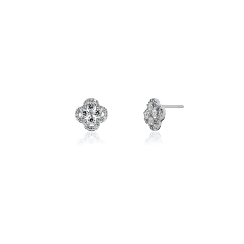 Victoria Clover Stud Earrings // Sterling Silver + CZ